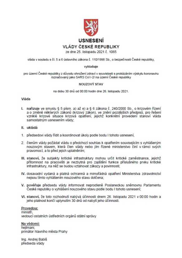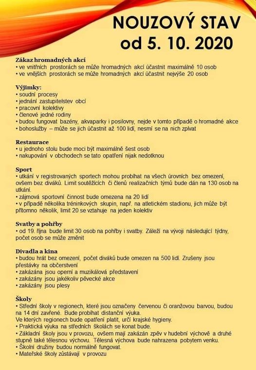Aktuální prodloužení nouzového stavu do 20 . listopadu 2020.