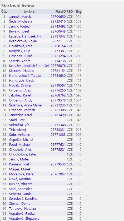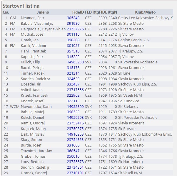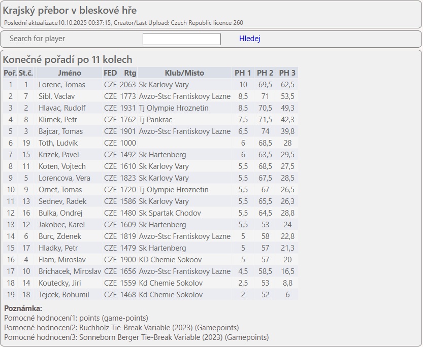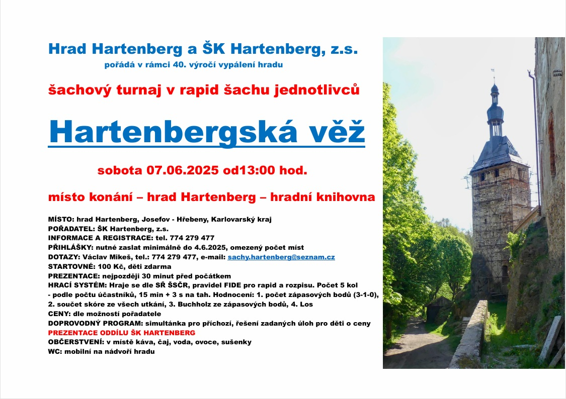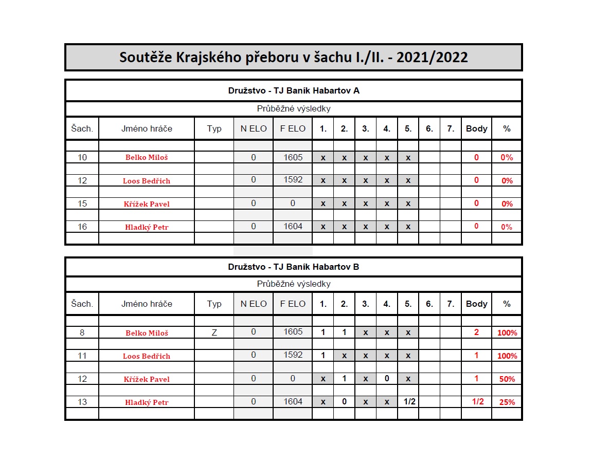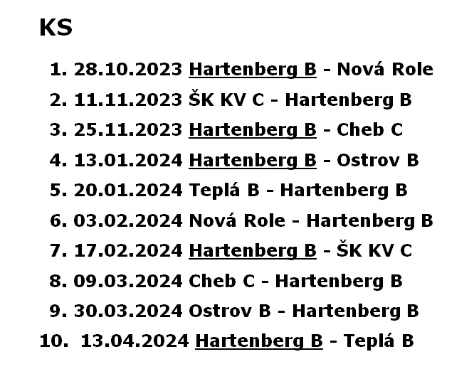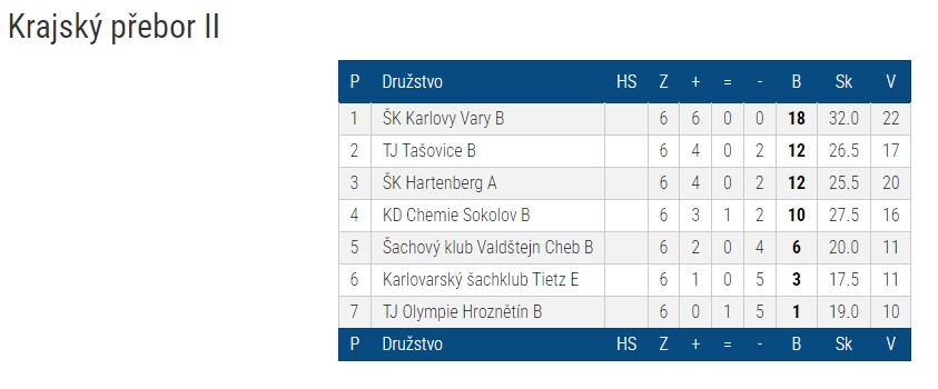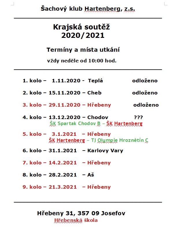 16.11.2025 ŠK Hartenberg B - ŠK Tašovice A 2½ : 5½ Olympie Hroznětín B - ŠK Hartenberg A 3 : 5