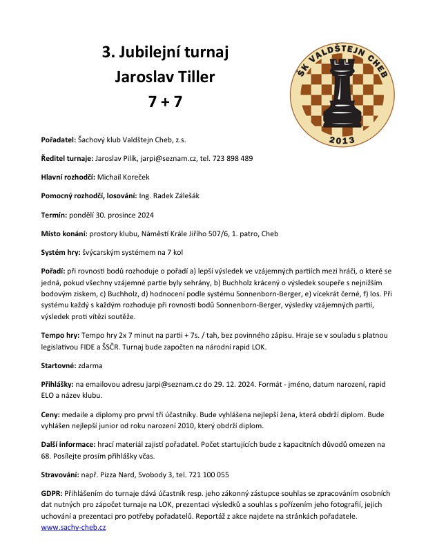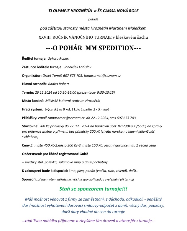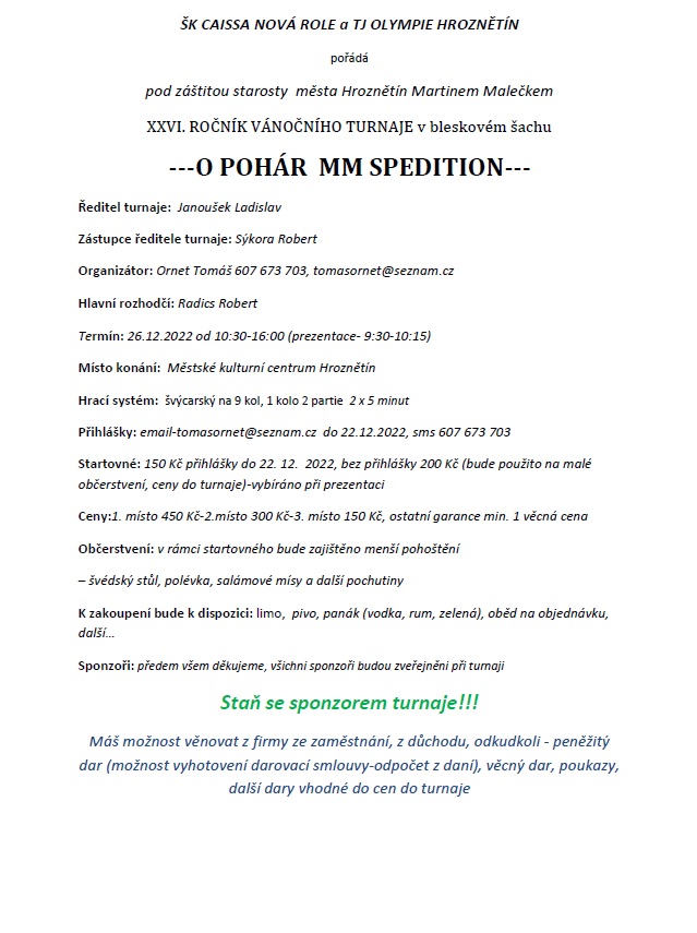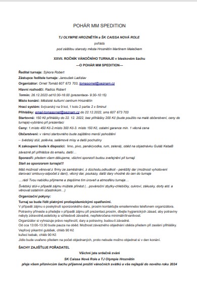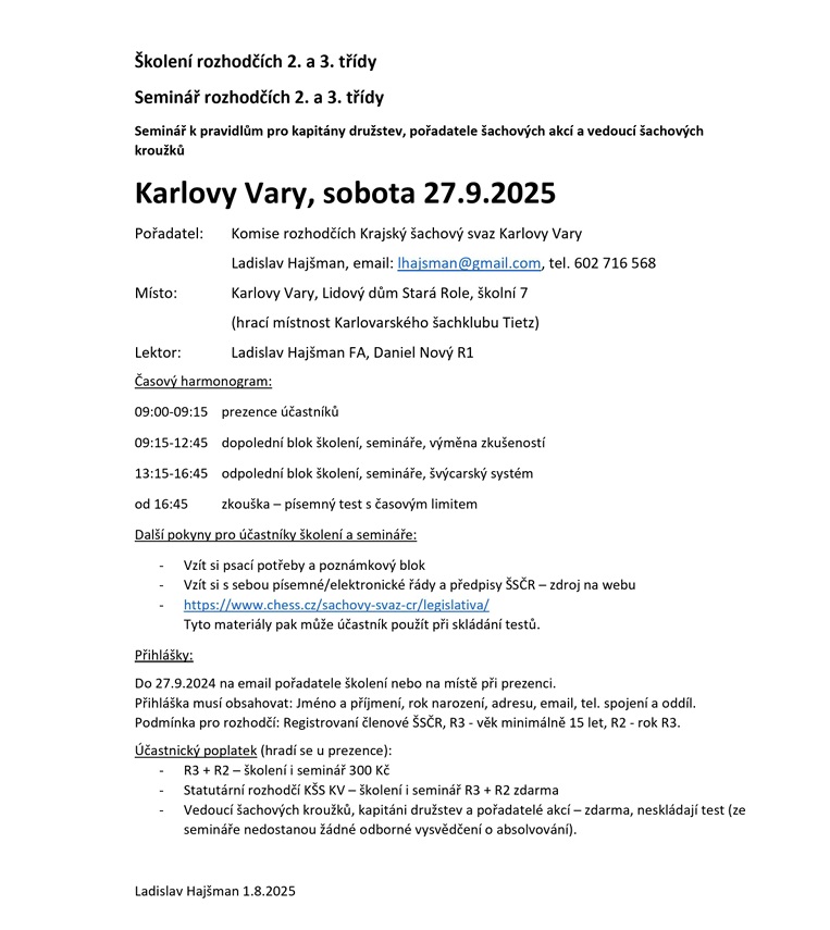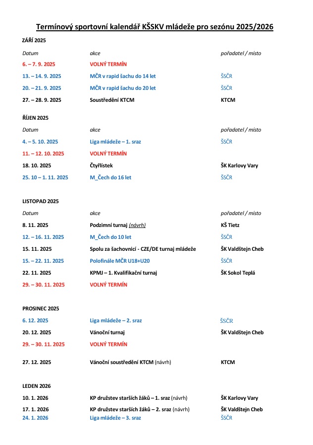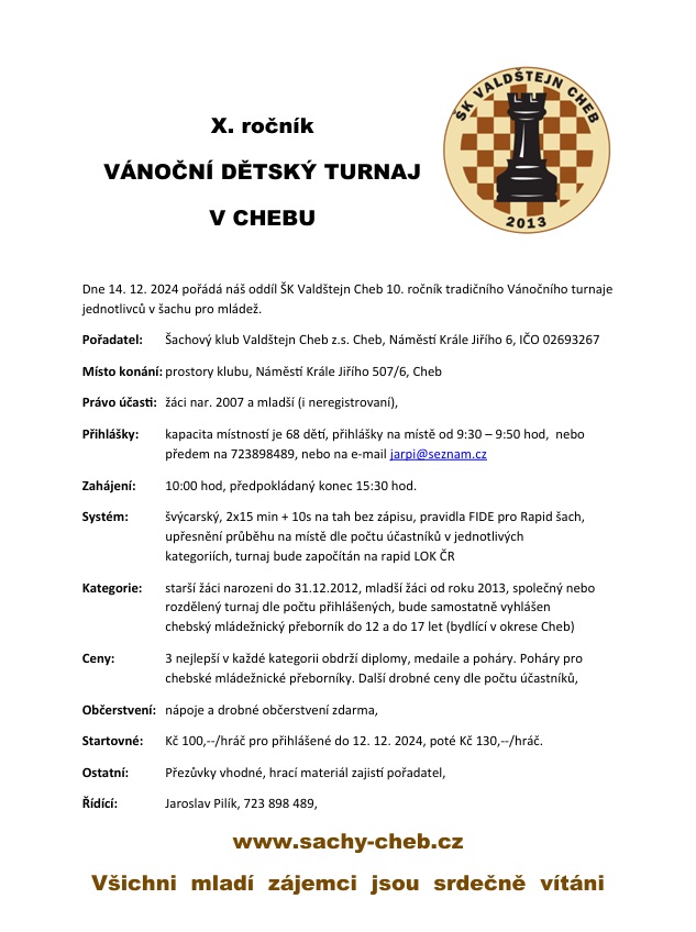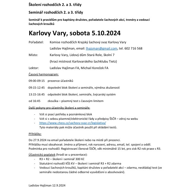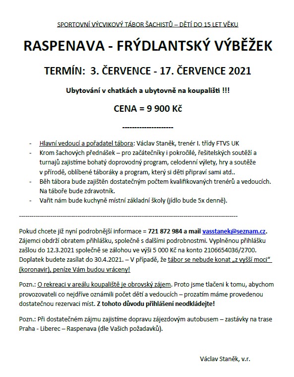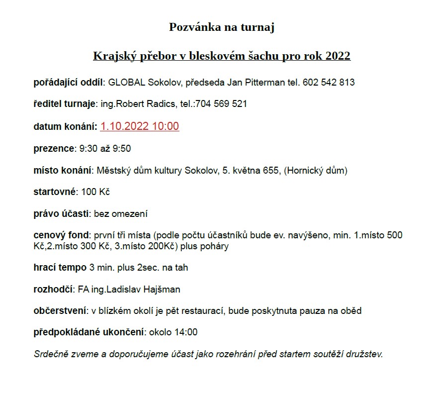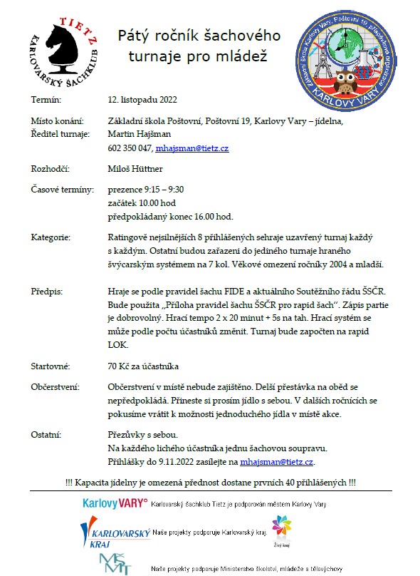 Nabídka pro naše členy - pokud máte v rodině mládežníka a bude schopen hrát šachy online, využijte nabídky. Online přebor mládeže karlovarského kraje nevyžaduje členství v Šachovém svazu ani registraci v oddíle. Jenom čas (vánoční prázdniny) a schopnost hrát šachy přes www.chess.com.