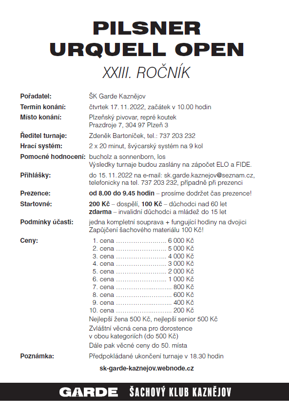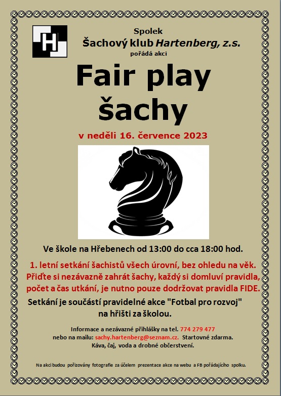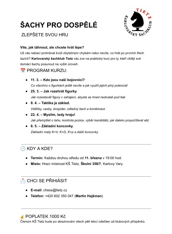 Přijďte se zahrát šachy, bez ohledu na vaší výkonnost, třeba jen tak. Včetně absolutních začátečníků (možnost seznámení s pravidly).