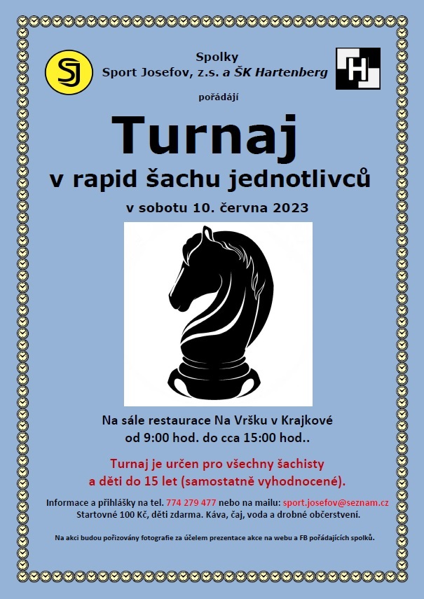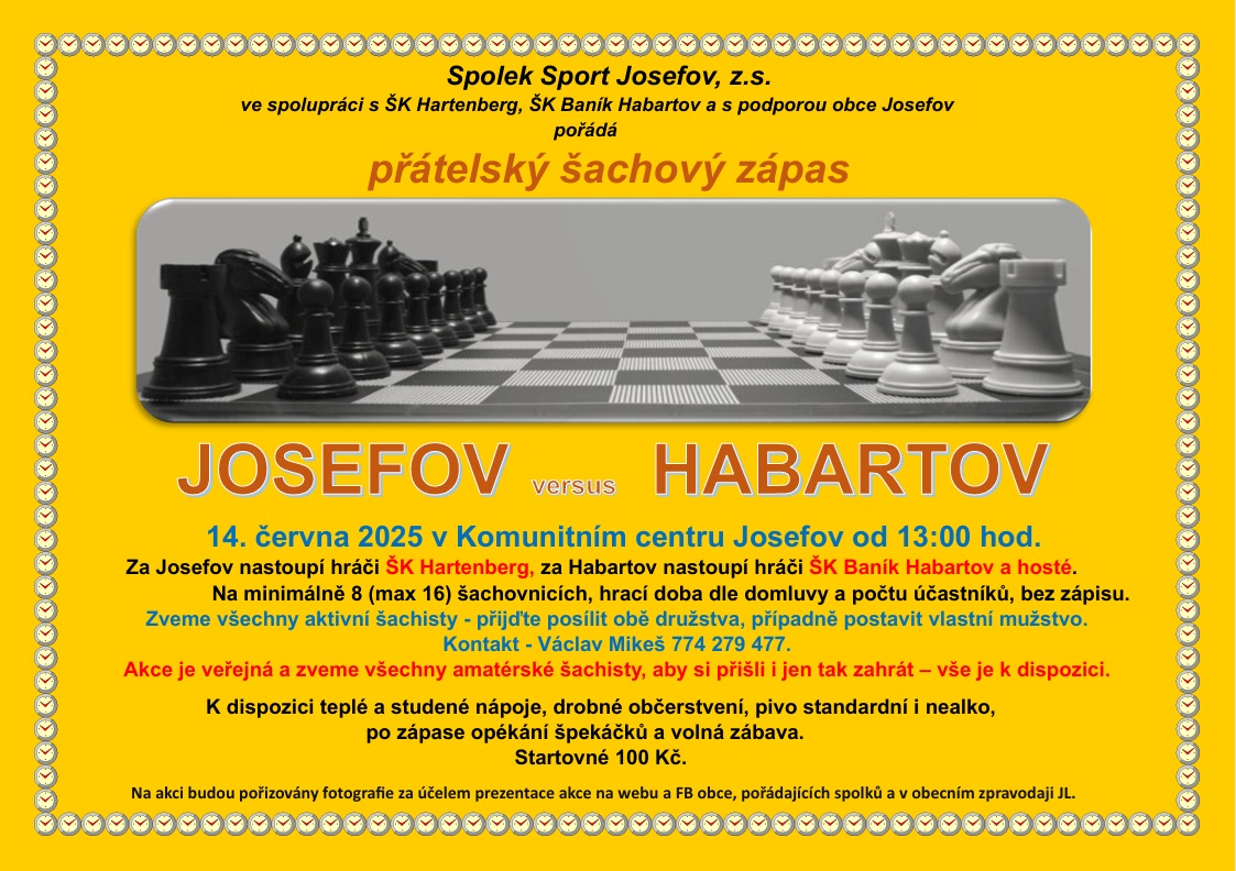 Spolek Sport Josefov 10 září 2022 pořádal turnaj v rapid šachu v Komunitním centru Josefov ve spolupráci s Šachovým oddílem TJ Baník Habartov.