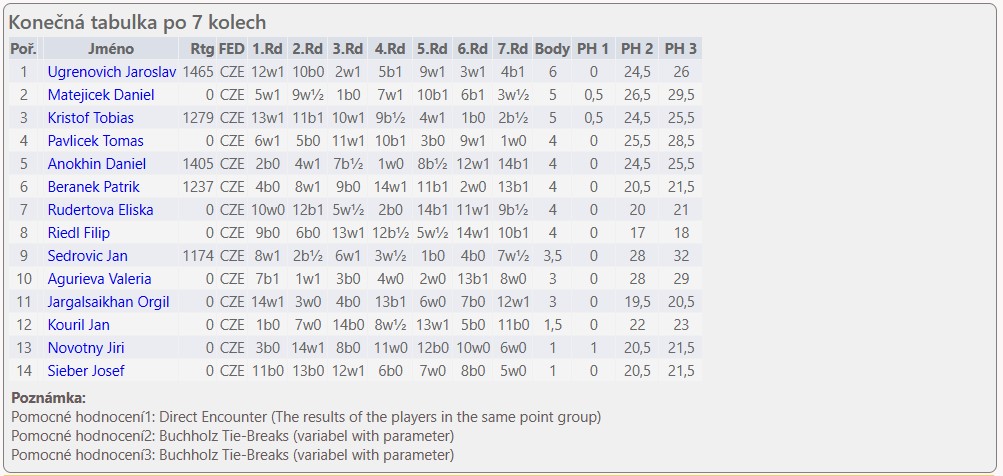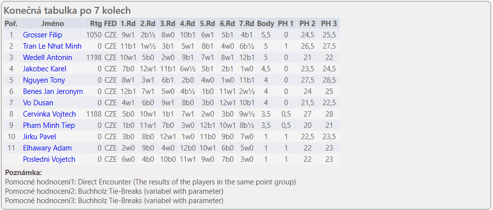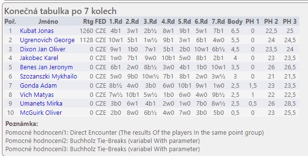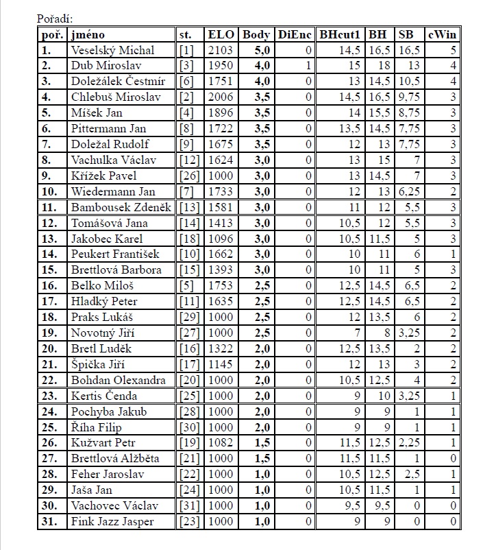 Letos 47. místo z 72 účastníků - zisk 4 bodů (2 vítězství, 4 remízy, 3 porážky),
