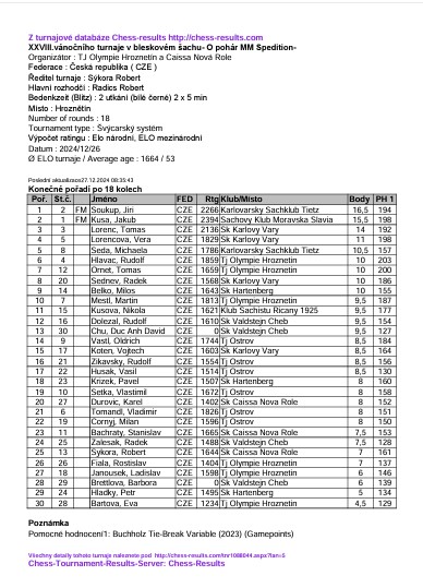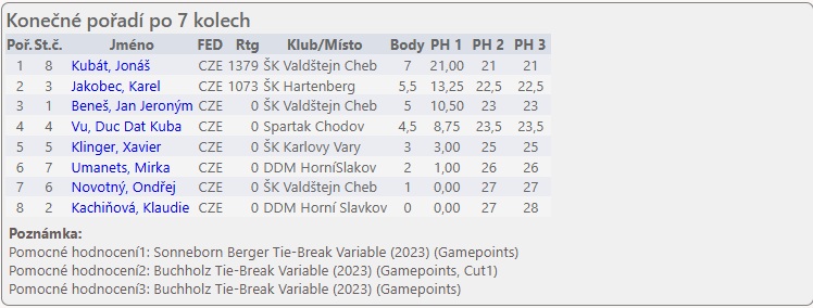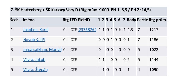 22.02.2026 ŠK Hartenberg A - Tietz Karlovy Vary D 7½ : ½