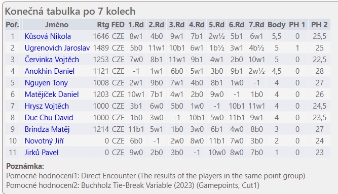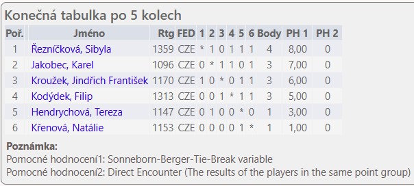 Konečný výsledek 2. nejvyšší krajské šachové soutěže sezóny 2025/2026:
