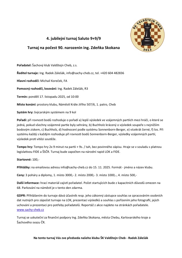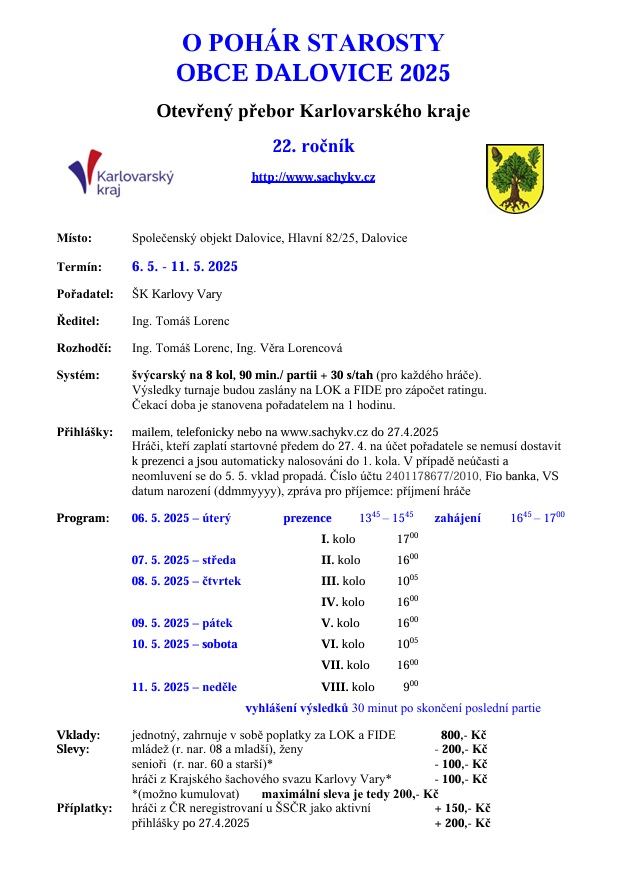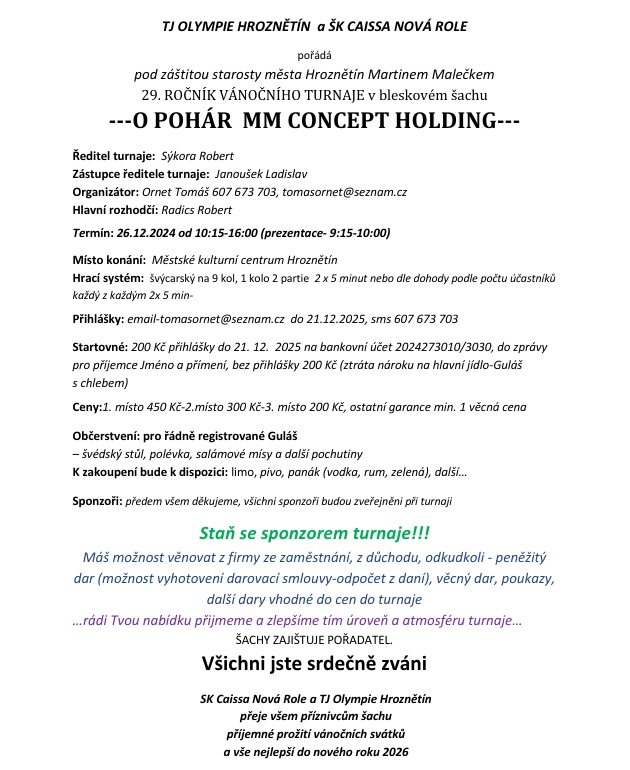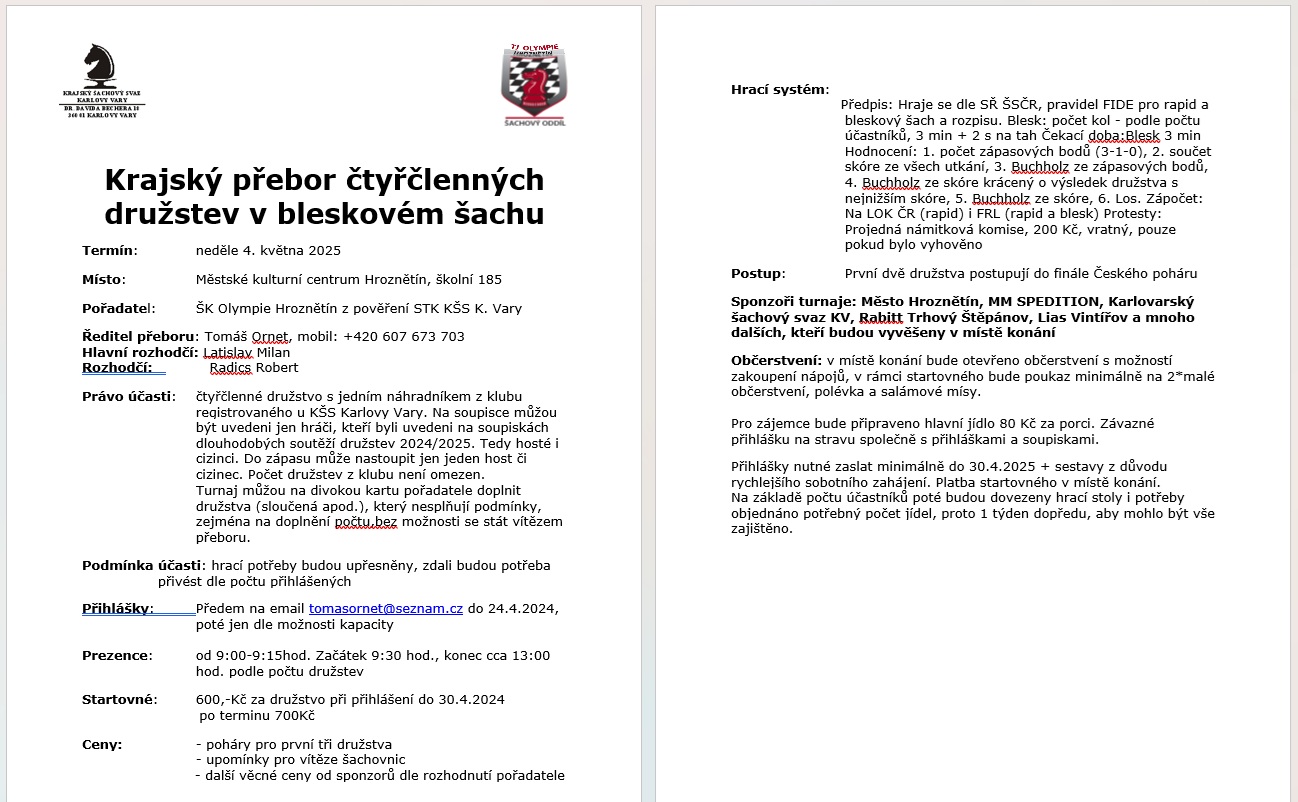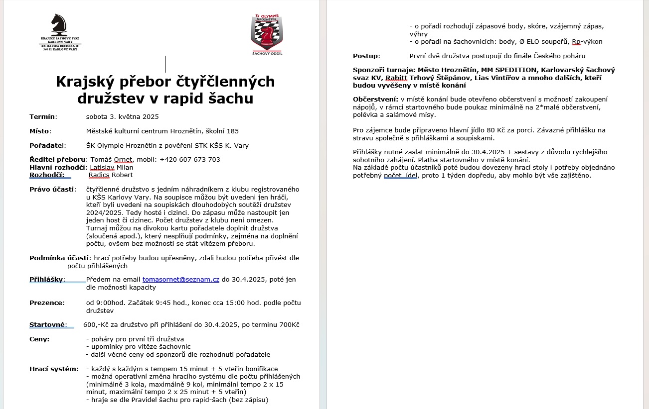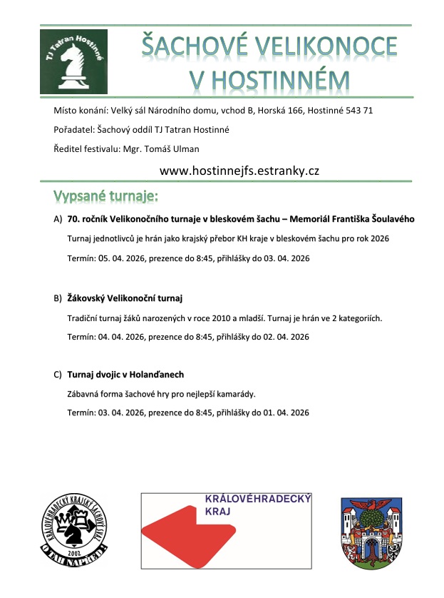 Šachové velikonoce v Hostinném - 3. - 5. 4.2026