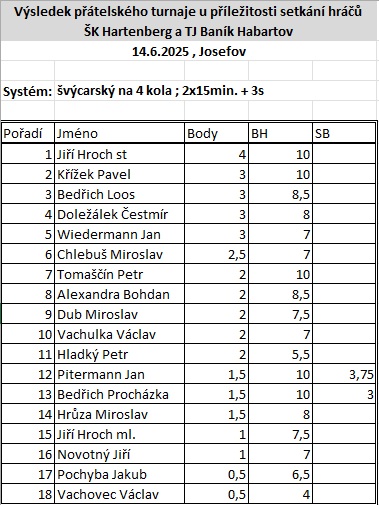 28.02.2026 ŠK Caissa Nová Role - ŠK Hartenberg C 3½ : 1½