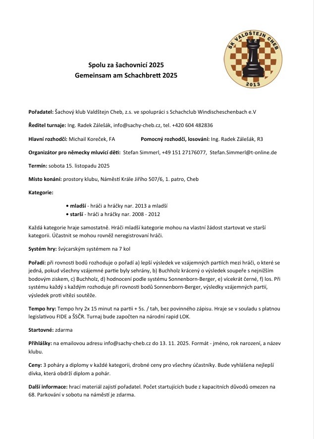 8.11.2025 - ŠK Valdštejn Cheb D - ŠK Hartenberg C - 3 : 2