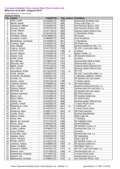 22.11.2025 - ŠK Hartenberg C - ŠK Caissa Nová Role - 1 : 4